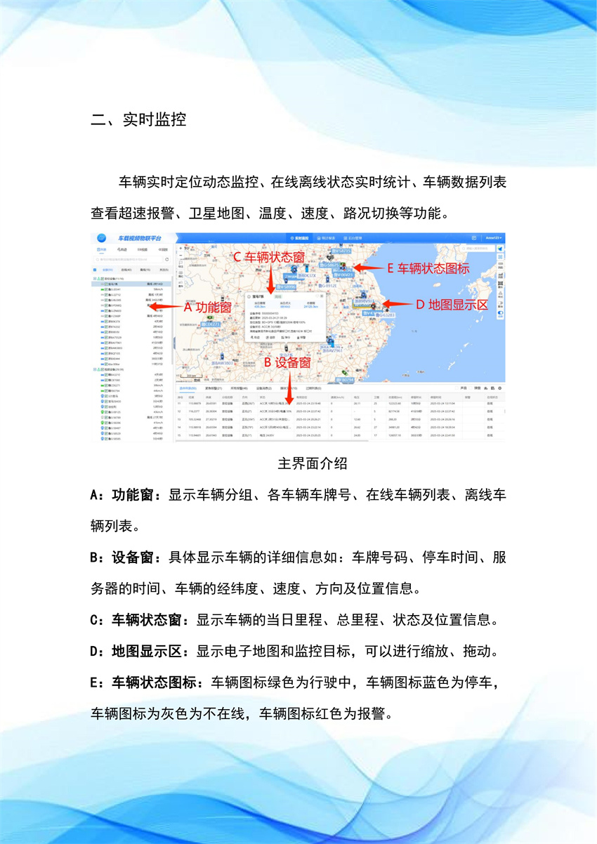 在运输环节,要配备满足配餐量和配送方式的封闭式配送车辆与设备,配送车辆向主管部门备案,宜专车专用并安装定位跟踪系统。德宝科技车队视频温度监控系统效果如下