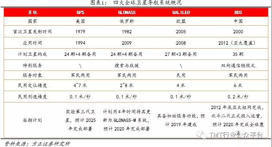 随着国防应用已经自主可控应用需求的推动,包括俄罗斯、欧洲、中国在内的众多国家和地区开始建设自有的卫星导航系统,目前主流四大全球卫星导航系统,包括美国GPS、俄罗斯GLONASS、中国BDS(北斗)以及欧盟GALILEO。