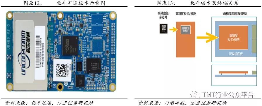 板卡是利用导航芯片、外围电路和嵌入式控制软件,制成带输入输出接口的板级产品,用户利用这个模块结合应用需求能够开发各种应用。北斗芯片及板卡的功能相当于电脑的 CPU与主板,用于信号接收后的解调和解算。