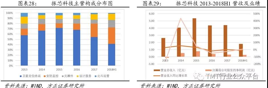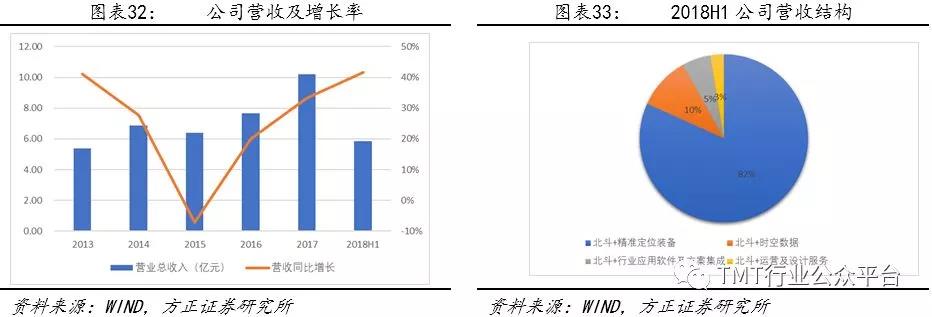随着北斗二号在2012年底建成并开启服务,公司凭借领先的北斗全产业链优势领先受益,实现了营收及净利润的同比快速增长。受“军改”影响公司2016年营收及净利润出现较大幅度同比下滑。2018年上半年北斗三号卫星系统发射进入高密度期。公司一直坚持研发投入巩固在北斗全产业链方面优势并且凭借已有的产业优势拓展北斗行业及民用市场。