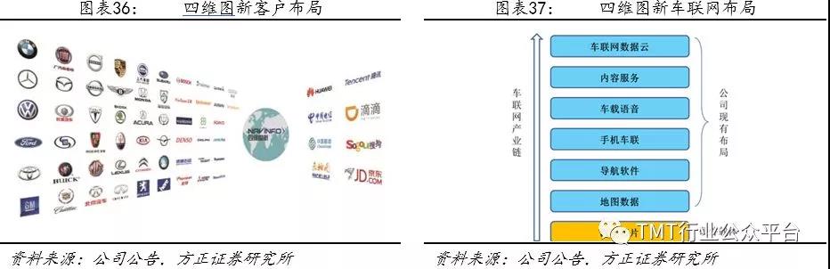 电子地图业务:电子地图作为车联网及智慧城市布局的刚需基础重要性不言而喻,但由于资质稀缺(全国仅14个公司及单位具有相关资质),门槛较高且市场份额非常集中,我们认为高精电子地图作为未来车联、物联的核心载体未来发展情况向好,建议关注与互联网巨头腾讯合作互补多占业务规模的第一大数字地图提供商四维图新。